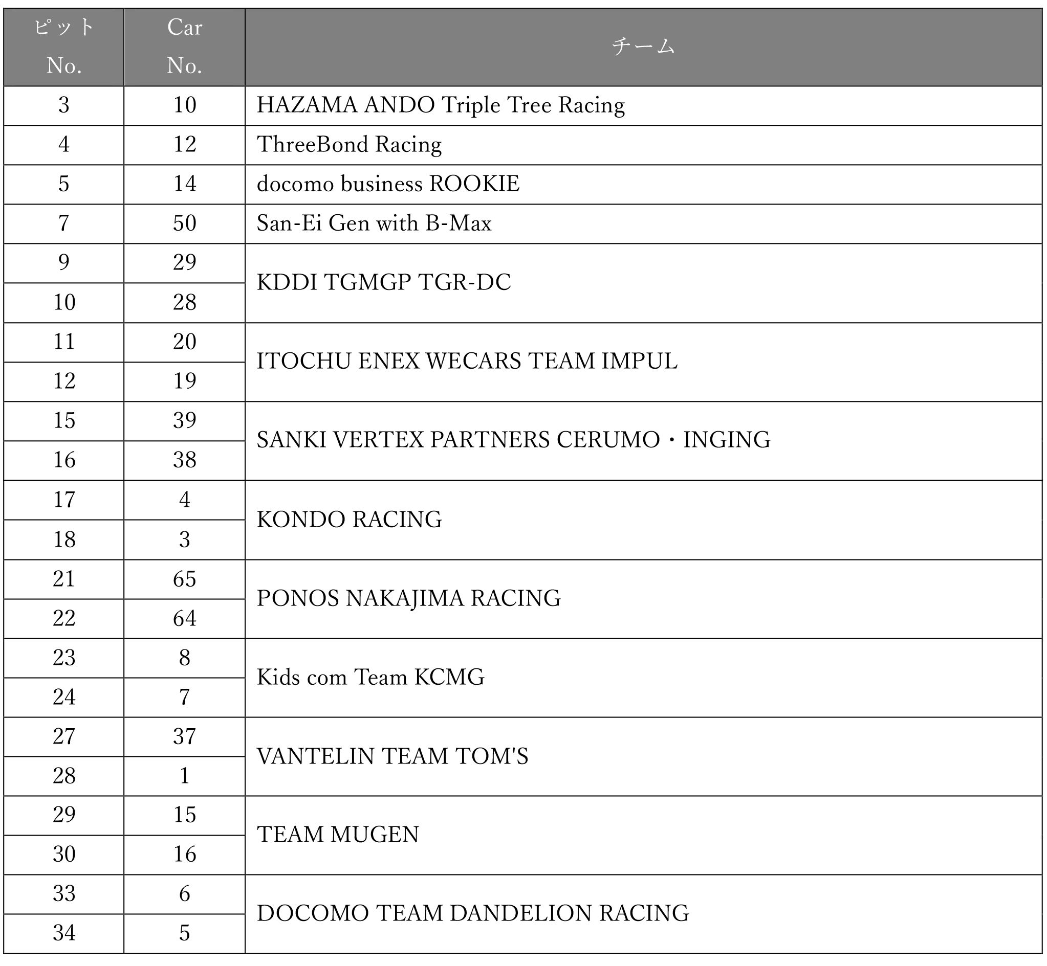 2025 SUPER FORMULA Rd.6-7 ピット割り