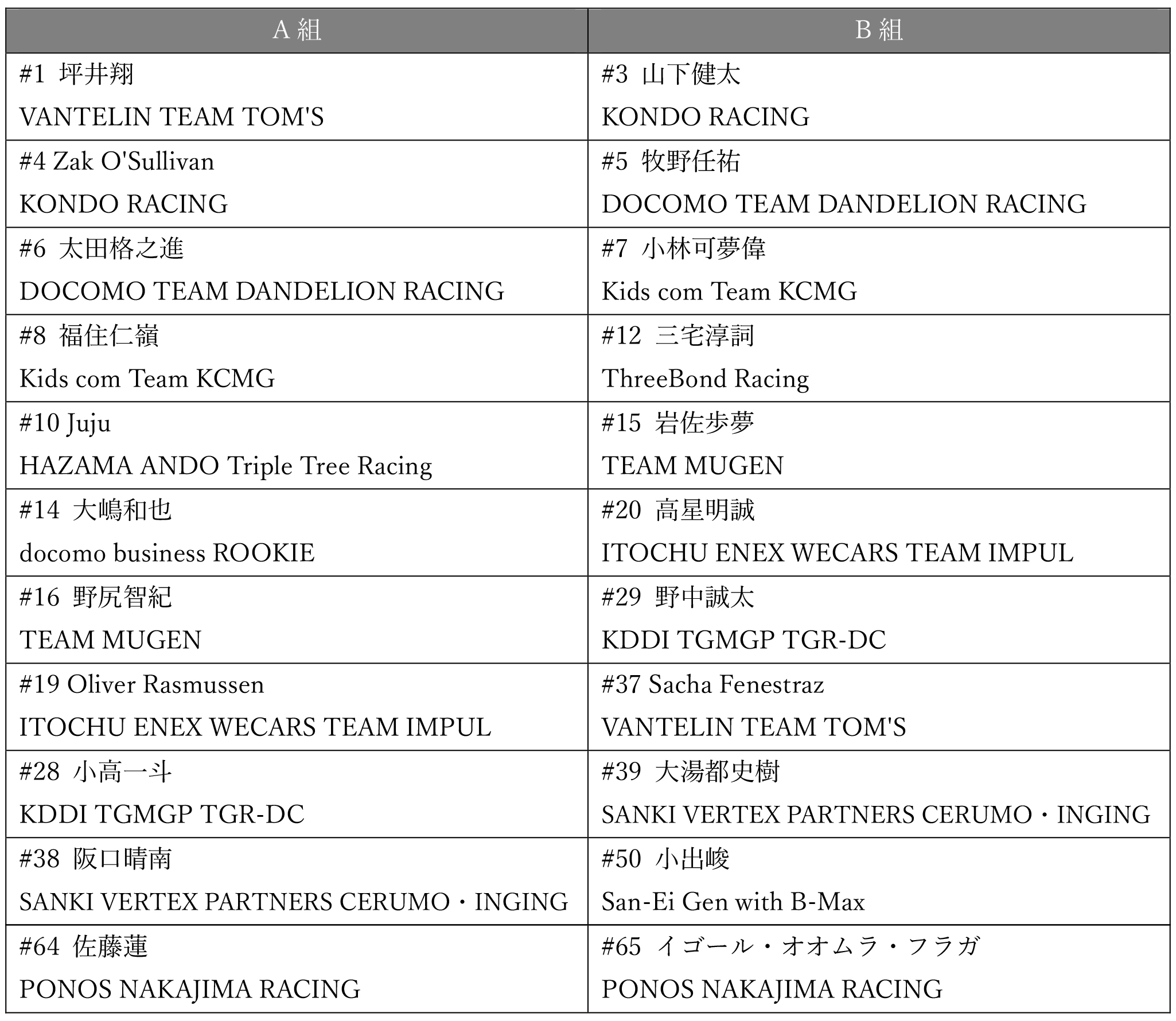 2025 SUPER FORMULA Rd.6 予選グループ分け(暫定)