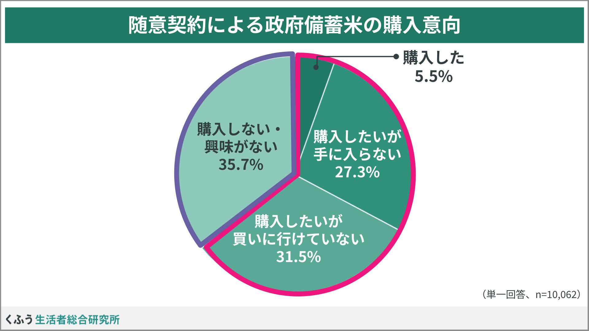 政府備蓄米の購入意向は64.3%。そのうち5.5%が「購入した」と回答