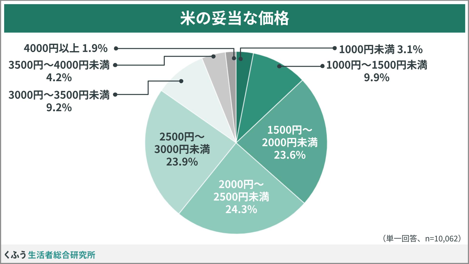米は「5kgあたり2000円~2500円未満」が妥当と回答した人が最多