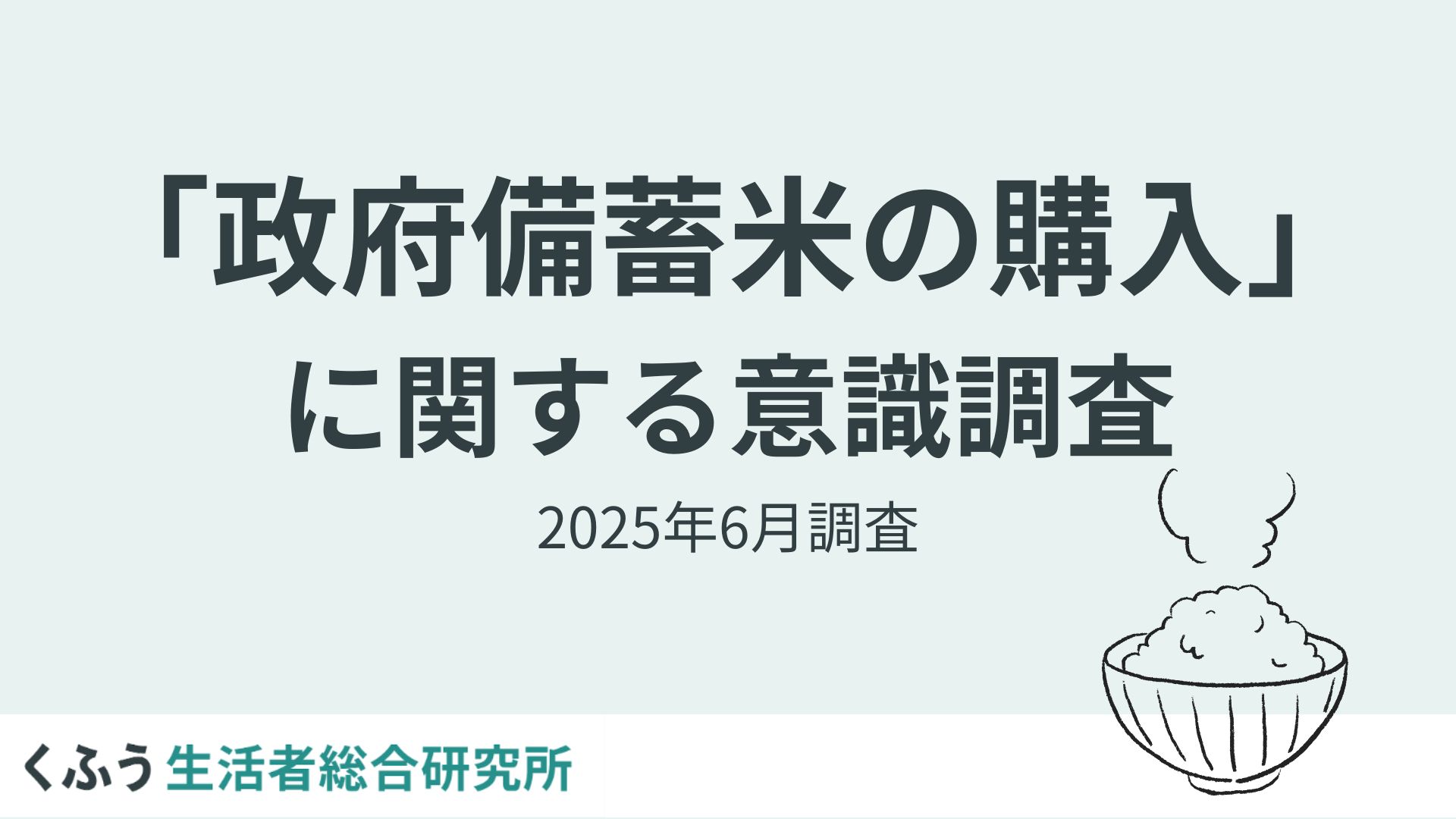 生活者と社会の生活満足度向上に資する研究・発信を行うくふう生活者総合研究所(以下、くふう総研)は、生活者10,062名を対象に「随意契約による政府備蓄米の購入」についての調査を実施しました。 2025年5月末より開始した随意契約による政府備蓄米の販売が話題となっていますが、実際の購入状況、購入者の満足度を調査しました。 ※本リリース内の「政府備蓄米」とは、すべて2025年5月末より販売開始した随意契約による政府備蓄米を表します。