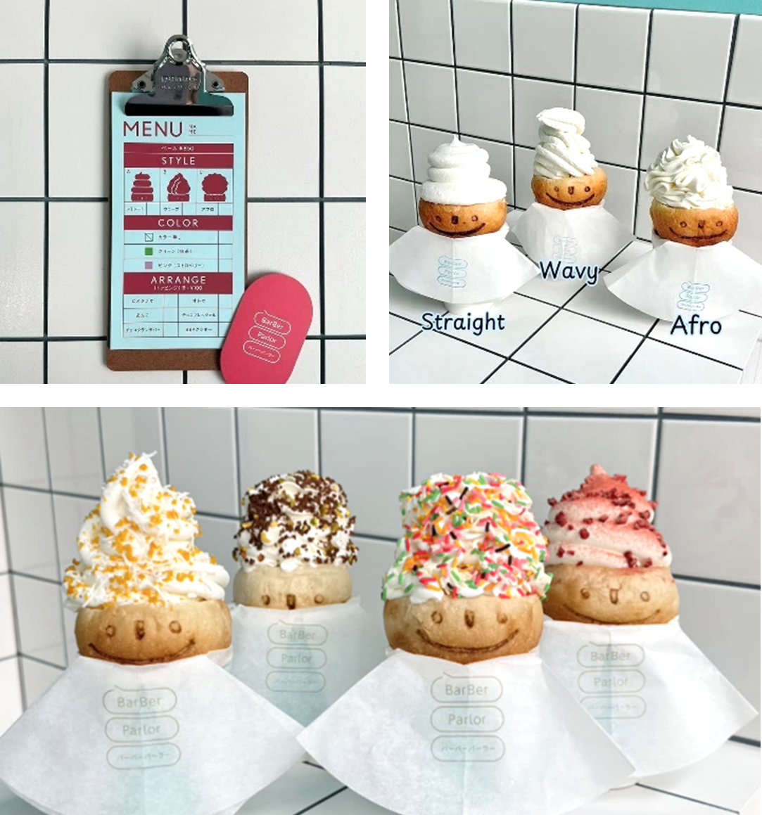 ヘアスタイルは、ストレート・ウェーブ・アフロの3種類、カラーとトッピングでヘアアレンジも可能。ソフトクリームのコーンの部分は、ハチミツバターをたっぷりと塗った焼立てのバゲットでできています。アツアツのバゲットに冷たいソフトクリームを載せてもすぐに溶けないのは、ソフトクリームが空気をたっぷりと含んでいるから。口に入れるとすぐに溶けてしまうほどの、まさに“エアリーソフト”な食感。ハチミツバターの優しい甘さと北海道ソフトクリームの濃厚なミルク感をひきたてます。