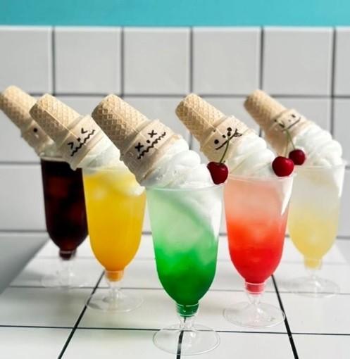シュワシュワのメロンソーダにソフトクリームがドボン!爽やかなソーダと北海道産ミルクを使用した濃厚なソフトクリームで清涼感あふれる飲み心地です。