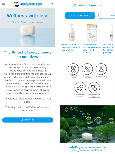 「無添加石けん」の販売土壌を築くための市場調査や競合分析などを行いながら、グローバル展開に向けたサイト戦略を策定。