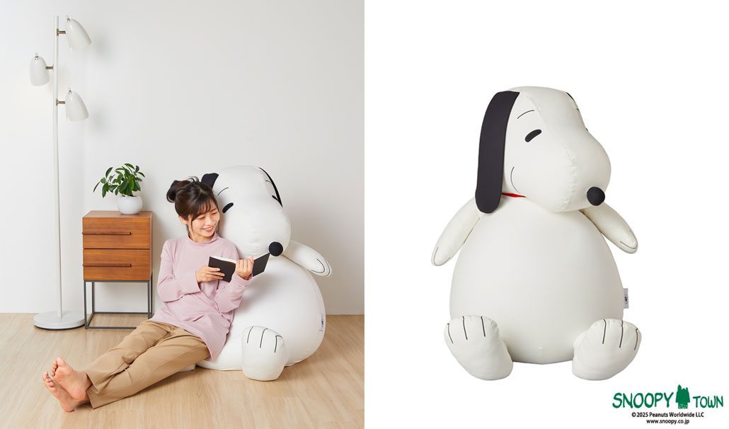 スヌーピーが斜め左を向いているポーズは、座ったときに背中に鼻が当たらず、自然に話しかけられるように――という細やかな配慮から生まれた設計です。見た目のかわいさだけでなく、使い心地にも徹底的にこだわりました。