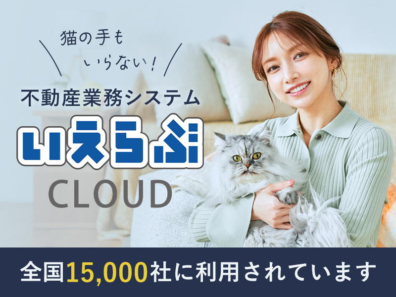 「いえらぶCLOUD」は賃貸・売買・管理すべてに対応したオールインワンの不動産業務支援システムです。毎週行われるアップデートの速さや、幅広い業務を一気通貫でオンライン化できる点が支持されており、全国の不動産会社15,000社以上で導入されています。