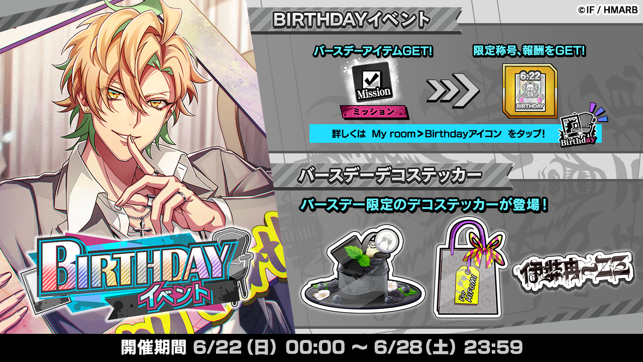 一二三の誕生日を記念し、「SSR【バースデー2025】伊弉冉一二三」を獲得することができるGコレクトや、バースデー限定のデコステッカーが獲得できるイベントなどを開催しています。