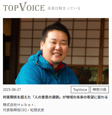 企業紹介サイトTopVoiceに企業紹介記事を追加しました(株式会社Huber./株式会社石見銀山地域経営研究所)