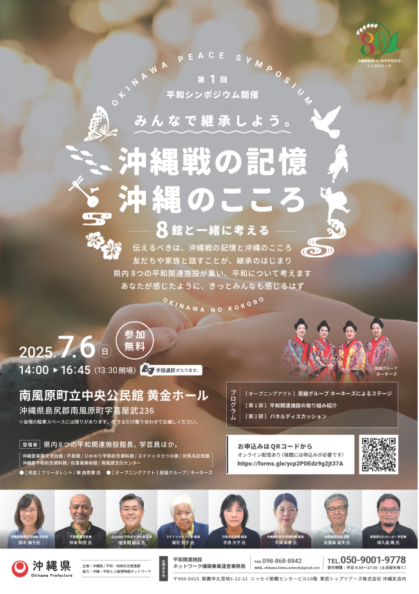 これら平和関連施設では、戦後80 年の節目を機に企画展や独自の取組を進めています。今回のシンポジウムは、これらの施設が連携して相互の情報共有、各種イベントを開催することで、平和発信力の相乗効果を図り、県内の方々に平和について考える機会を創出することを目的としています。