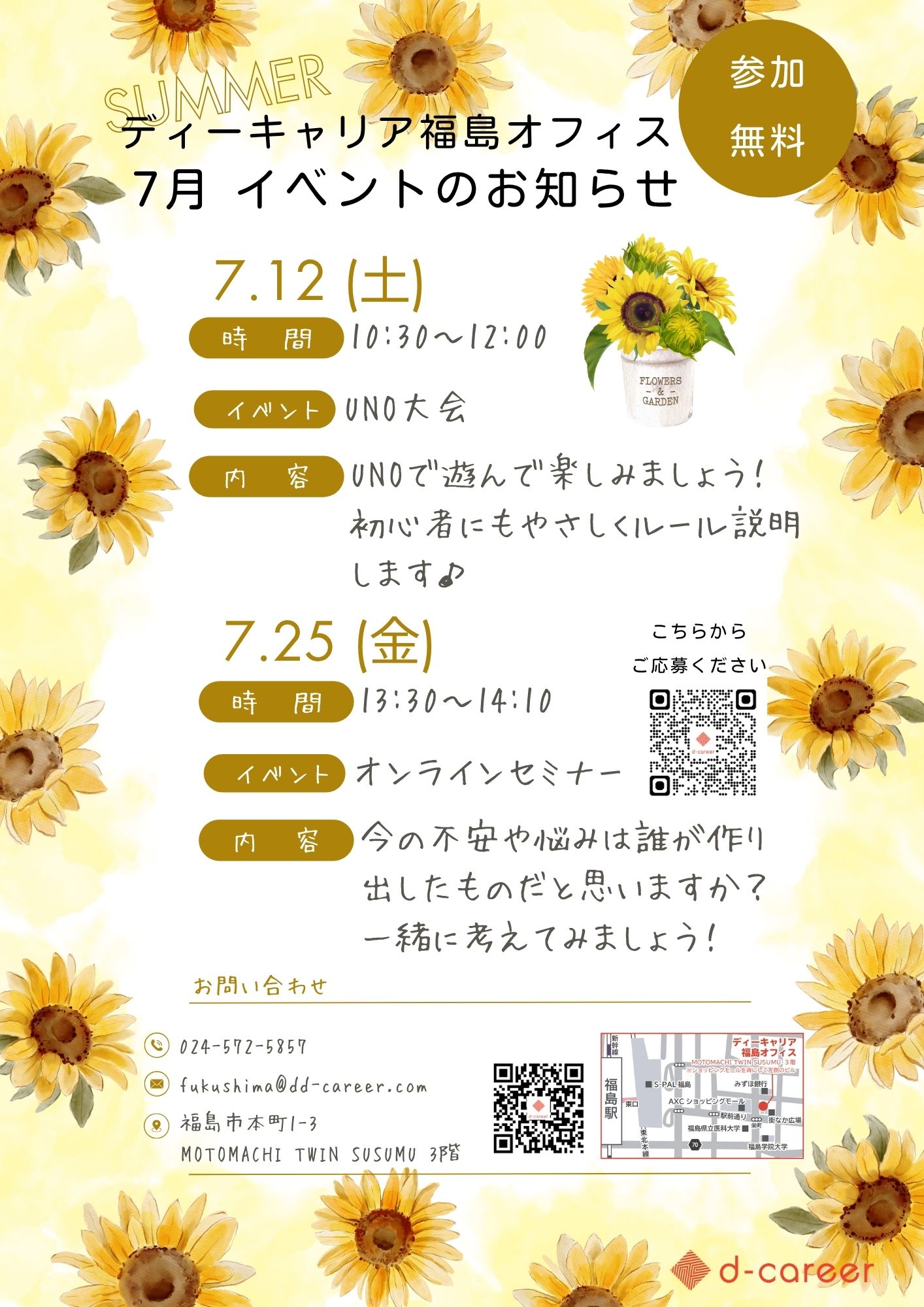 発達障害や精神障害のある方の“自分らしい就労”を支援する「ディーキャリア福島オフィス」では、2025年7月に2つのイベントを開催いたします。