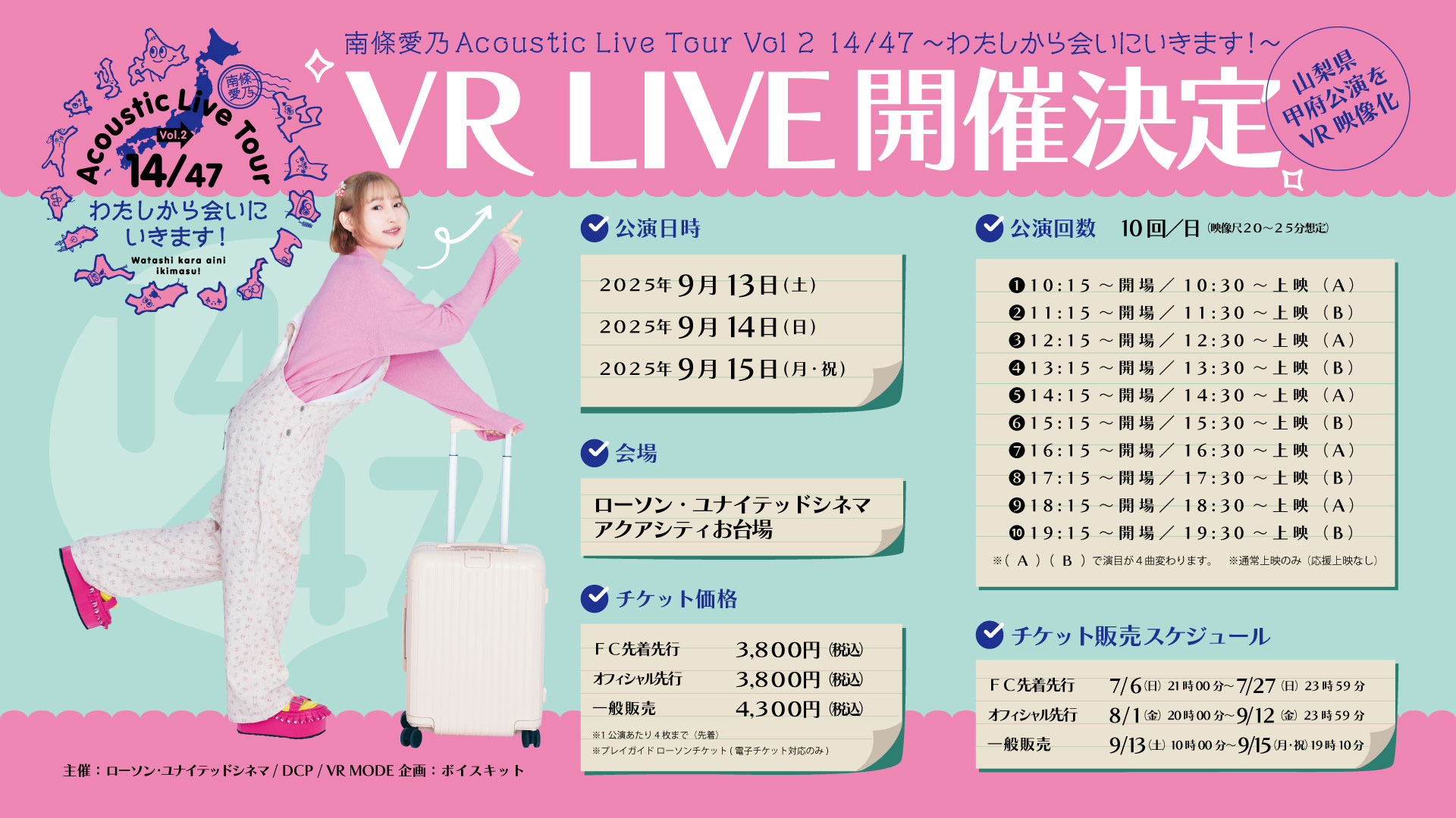 VR一斉配信システムを活用した【新感覚 VRシアターイベント】南條愛乃 Acoustic Live Tour Vol.2 14/47 ~わたしから会いにいきます!~ VR LIVE開催のお知らせ