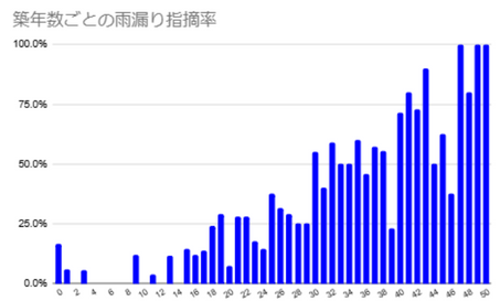築10年以内でも30軒に1軒で"雨漏りの形跡"