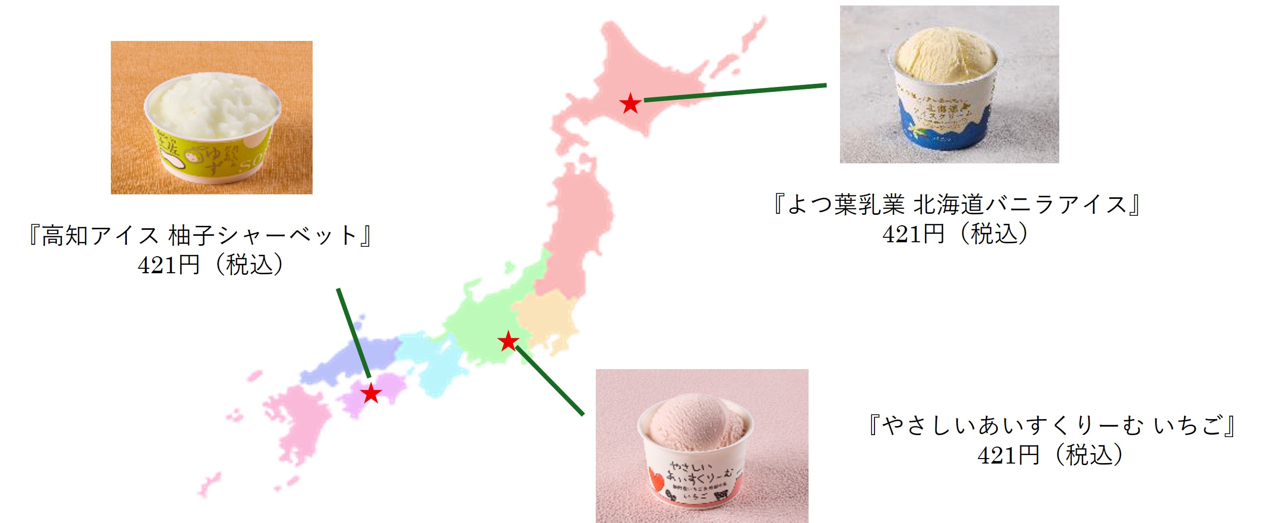 猛暑の夏に涼をお届け!ひんやり「ご当地アイスフェア」を開催 北海道、静岡県、高知県の厳選素材を生かした3種類 2025年7月14日(月)~期間・数量限定販売