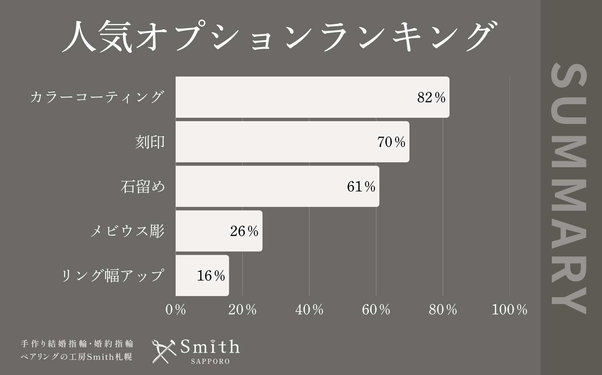 株式会社一宝(所在地:北海道札幌市)が運営する、北海道の手作り結婚指輪・婚約指輪・ペアリング工房「工房Smith札幌」は、2025年6月にご依頼いただいたペアリングのオプションランキング結果をまとめました。