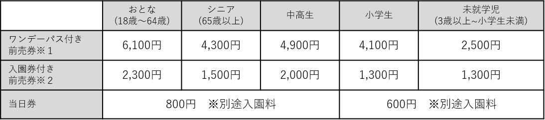 ※1 遊園地入園+アトラクション乗り放題+「体感するファーブル昆虫展inよみうりランド」入場