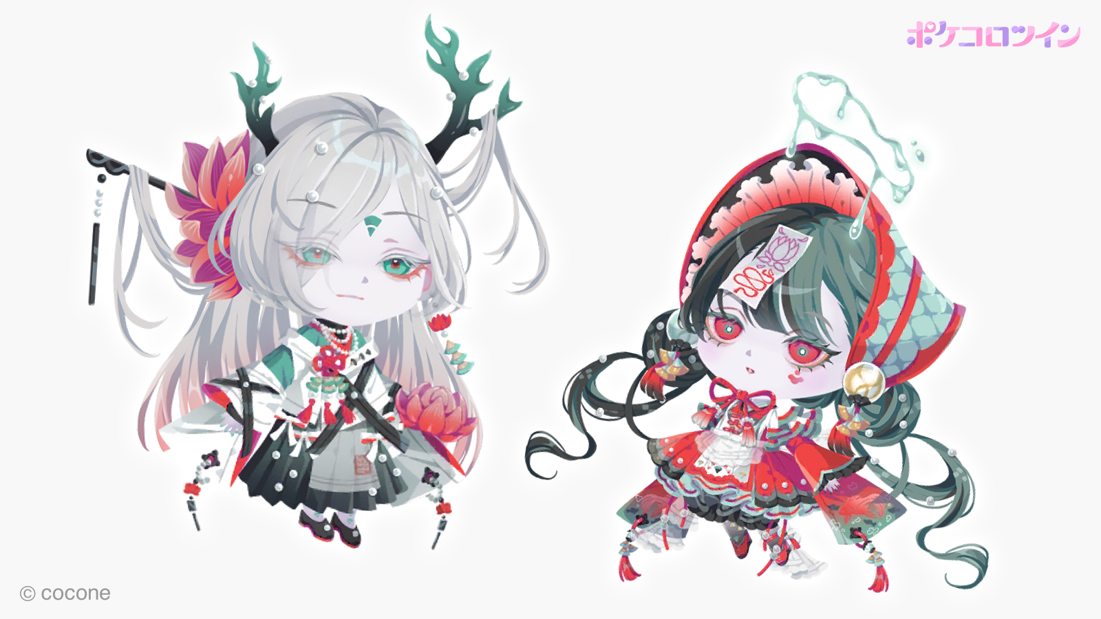ココネ株式会社(以下「ココネ」)は、ふたごのアバター「ココロン」の着せかえやお客様同士のコミュニケーションを楽しむスマートフォン向けアプリ『ポケコロツイン』において、様々なデザイン様式を融合させ、独特な色使いで神秘的な世界観と物語を作り上げるイラストレーター 「しきみ」さんが描き下ろしたイラストをアイテム化し、これらを記念した特別イベントを本日より開催することをお知らせします。