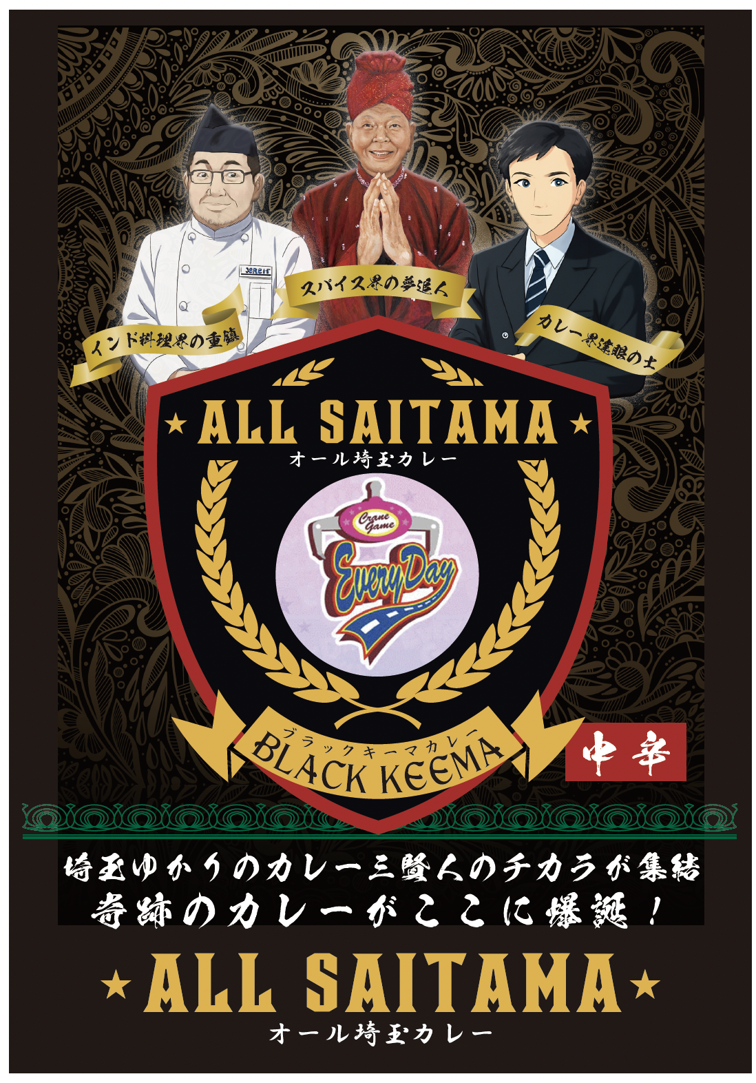 埼玉県を代表するカレー三大企業「名店デリー(本庄)×井上スパイス(上尾)×カレー総合研究所(加須)」が織りなすトレンド「ブラックカレー」キーマ版を埼玉が全国に誇るアミューズメント「エブリデイ」で導入!