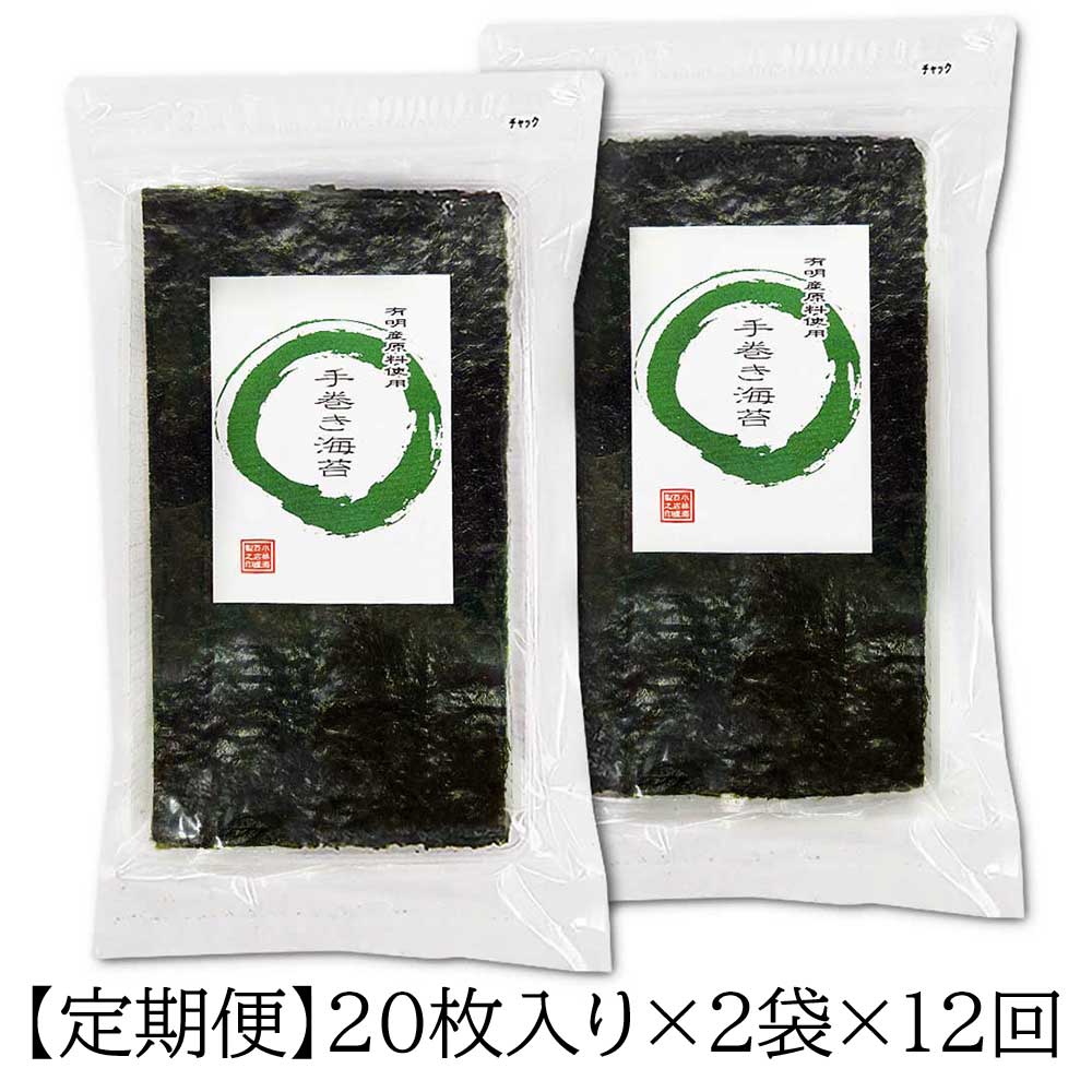 - 商品名:【定期便】手巻き海苔(緑) 半切20枚入り×2袋 有明海産<送料込み>