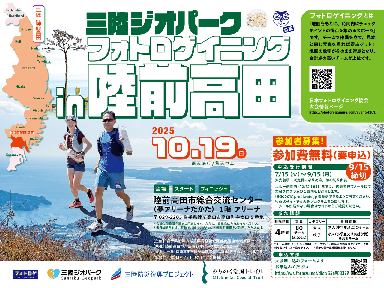 岩手県陸前高田市にて10月19日(日)に「三陸ジオパーク フォトロゲイニング in陸前高田」を開催します