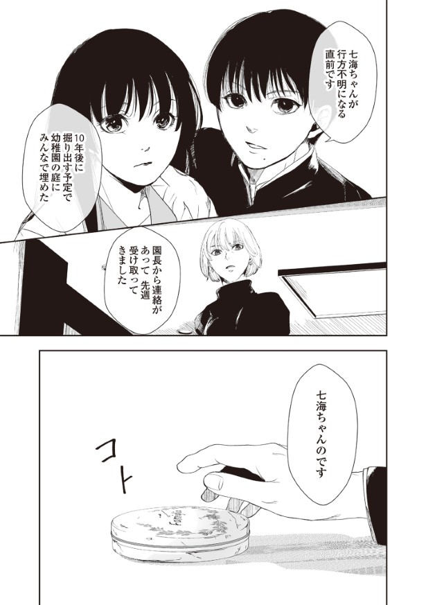 子どもの失踪という重いテーマを扱ったミステリーではありますが、根底で描きたかったのは、夫婦・友人・恋人たちの間にある、さまざまな愛の形でした。pixivではたくさんの温かいコメントをいただき、そのひとつひとつに励まされました。皆さんと一緒に作品を育ててきたという実感があります。本当にありがとうございました。
