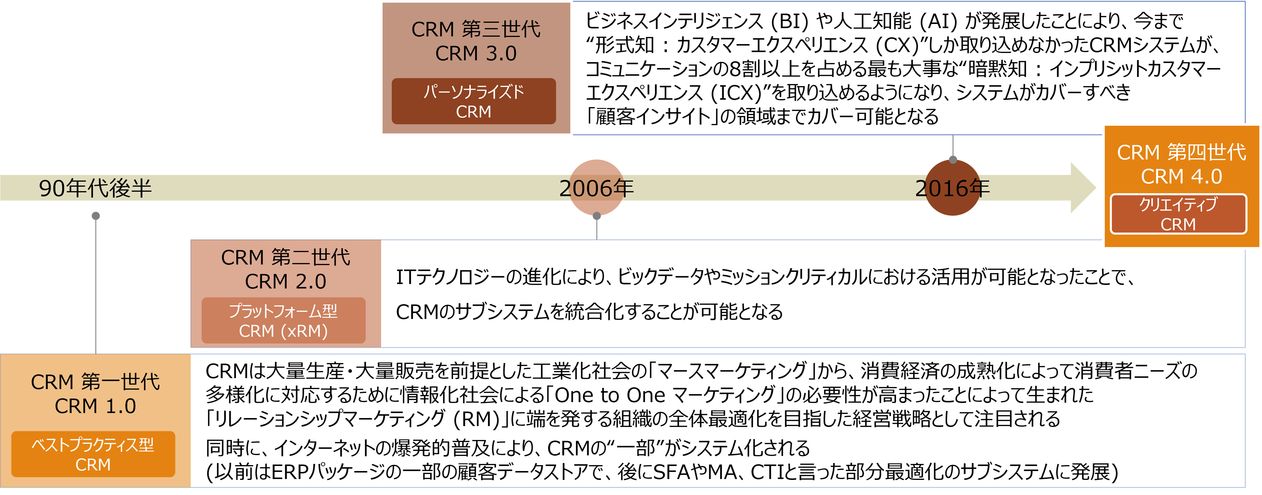 CRMは1.0〜3.0の進化を経て、顧客理解やパーソナライズの高度化が進んできました。