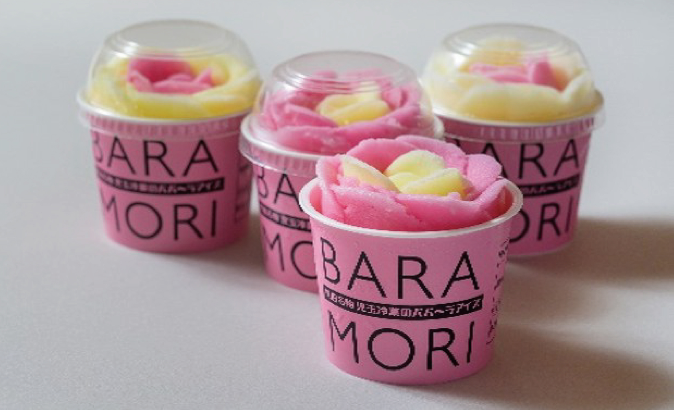 売り子さんがアイスクリームをヘラで盛ることから名付けられた秋田名物、元祖児玉冷菓のババヘラアイス。バラの花が咲いたように盛り付ける 「バラ盛り」を一つ一つ手づくりしており、職人技まで楽しんでいただけるアイスです。