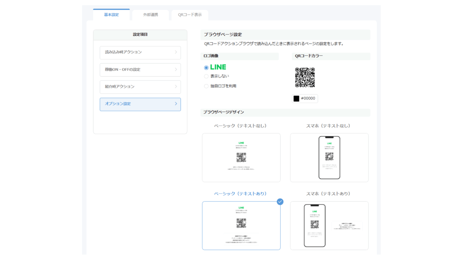 稼働をOFFにしている場合でも、お客さまがQRコードを読み取ると、テキストページや指定したページを表示できます。