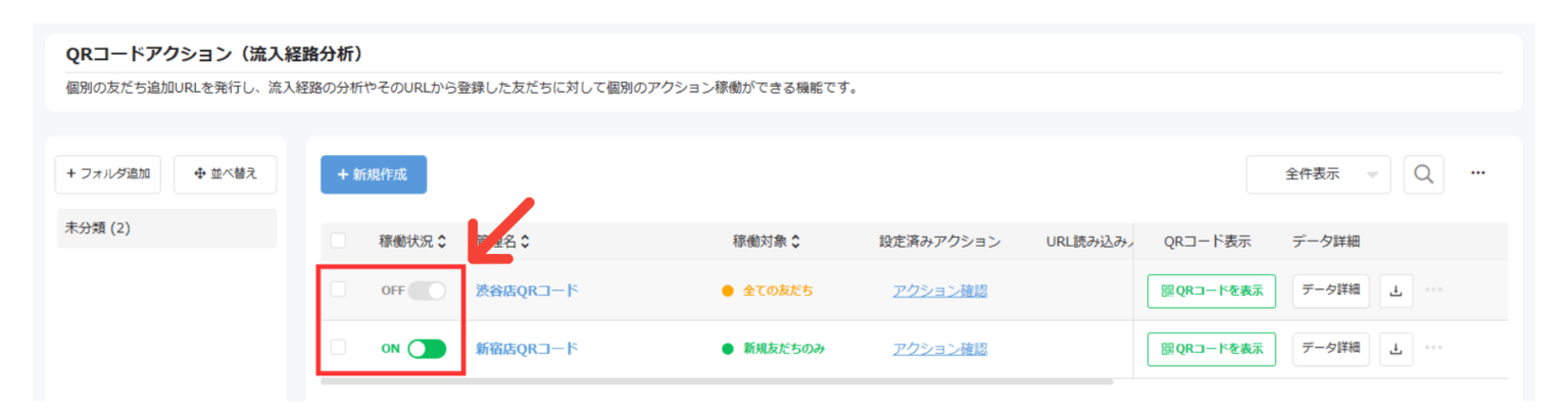 QRコードの稼働を、任意のタイミングでONとOFFに切り替えられる新機能を追加しました。