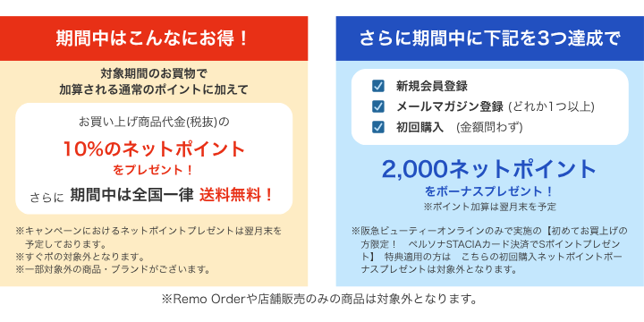 期間中のご購入で、通常のネットポイントに加えてさらに10%のネットポイントをプレゼント。