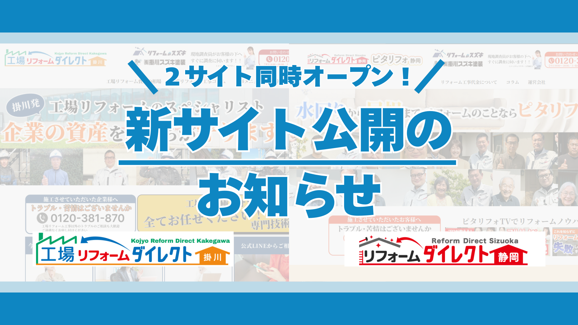 掛川スズキ塗装が2サイトを同時公開!工場・住宅の悩みに応える専門リフォーム情報をわかりやすく発信