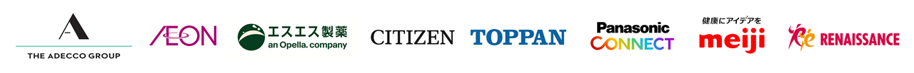 アデコ✕イオン✕エスエス製薬✕シチズン時計✕TOPPAN HD✕パナソニック コネクト✕明治HD✕ルネサンス