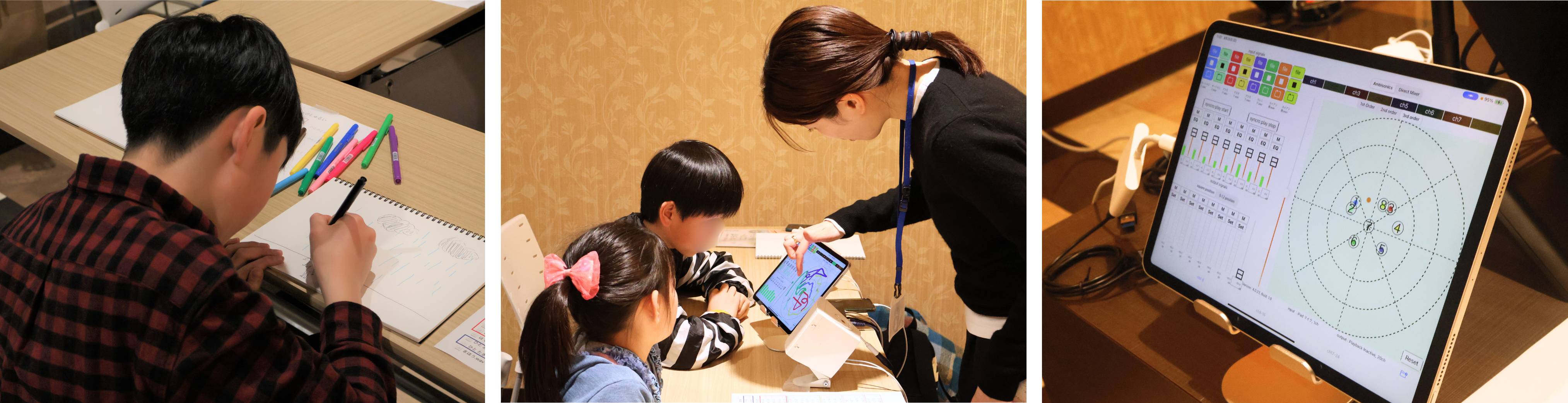 さらに、完成した音と絵を会場で発表し、作品に込めた想いやイメージを言葉で伝えることで、五感を通じて表現するよろこびを実感することができます。創作した音源は後日、参加者のご家庭へメールでお届けします。