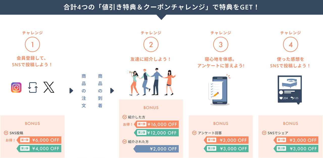 ■合計4つの「値引き特典&クーポンチャレンジ」で特典をGET!