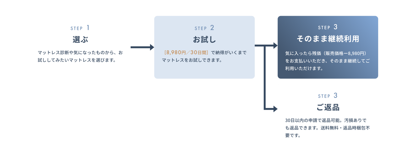 30日間8,980円で、納得がいくまでマットレスをお試しできます。