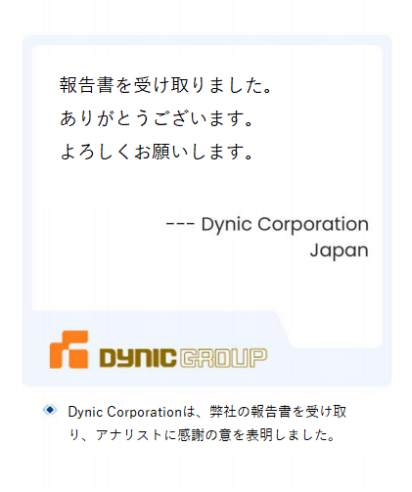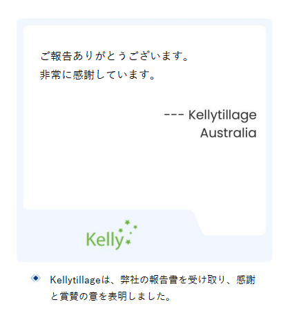 「ご報告ありがとうございます。非常に感謝しています。」