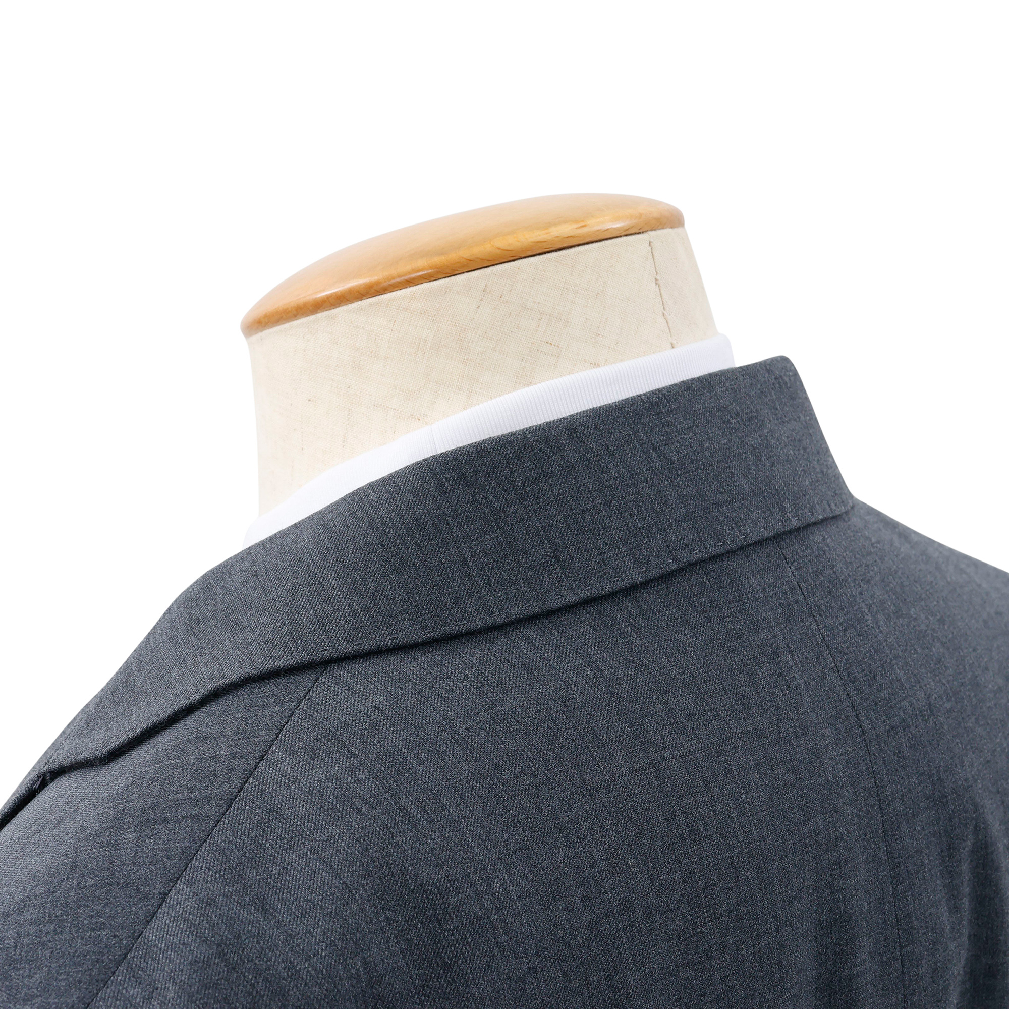 ジャケットの中で袖がもたつかないように、袖の角度とアームホールを工夫しています。