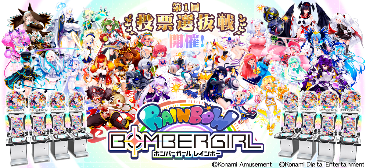 株式会社コナミアミューズメントは、アミューズメント施設向けビデオゲーム「ボンバーガール」が8月30日(土)に稼働7周年を迎えることを記念して、『ボンバーガール レインボー』にてゲーム内イベント「夏だ!水着だ!小麦色ボンバーガール 投票選抜戦」を8月7日(木)から開催することをお知らせします。