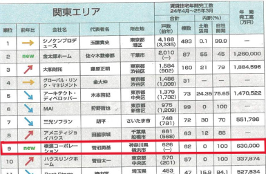 ~神奈川県内企業で唯一のランクイン/年間完工数626戸を記録~