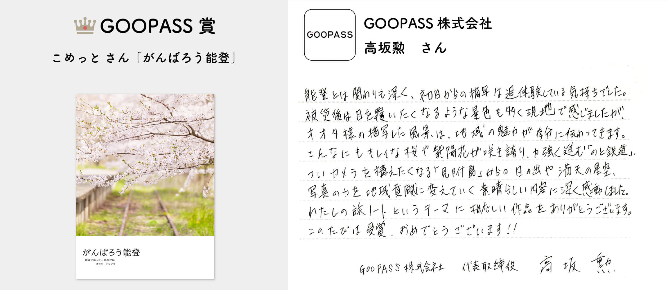 GOOPASS賞:「がんばろう能登」 こめっと さん