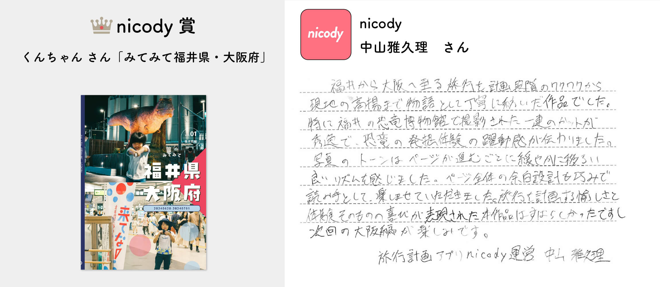 nicody賞:「みてみて福井県・大阪府」 くんちゃん さん