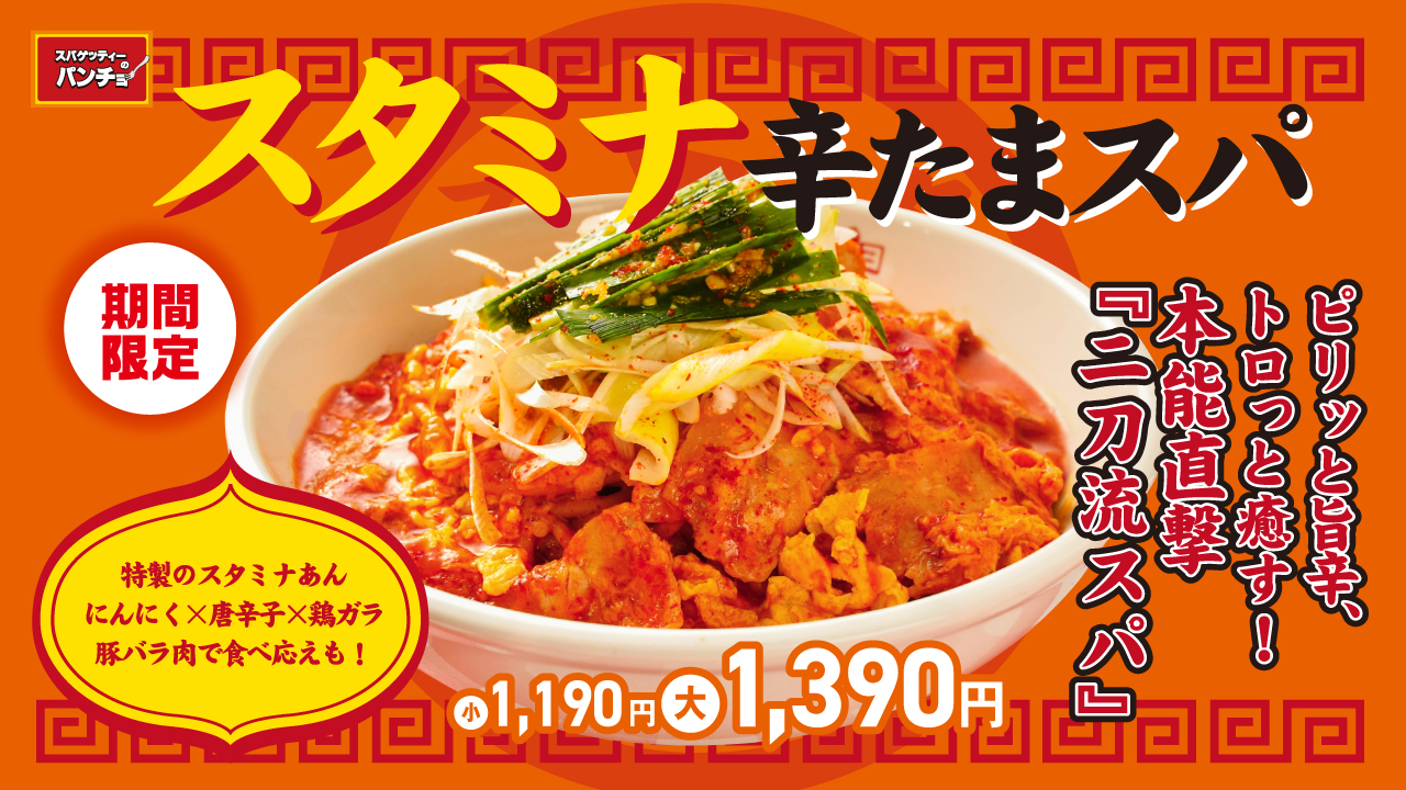 「いつもはスタミナ系ラーメンだけど…」そんながっつり系がお好みの方も趣向を変えてスタミナ系スパゲッティーを試してみるのもいかが?夏を乗り切るパンチョ応援メニュー、期間限定「スタミナ辛たまスパ」をお近くのパンチョでお楽しみください!