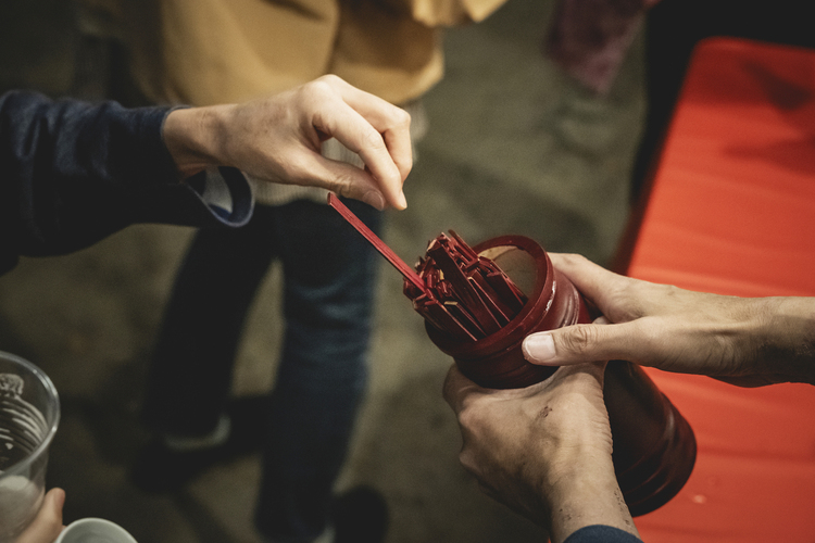 酒くじと倒し木遊びができる酒処では、結果が良いと特別なお酒が楽しめます。