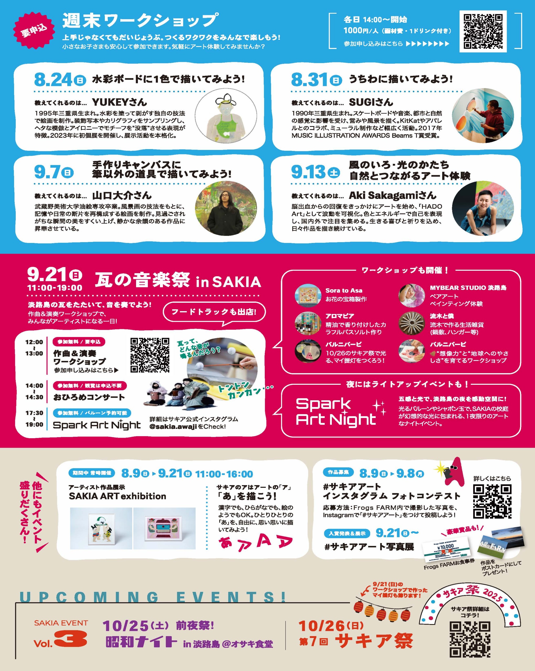【 8月9日〜9月21日 】兵庫県淡路島・旧尾崎小学校「SAKIA」で開催、アーティストが企画する体験型ワークショップや音楽祭などのアートイベント「サキアアートデイズ」にプロモーション協賛決定!
