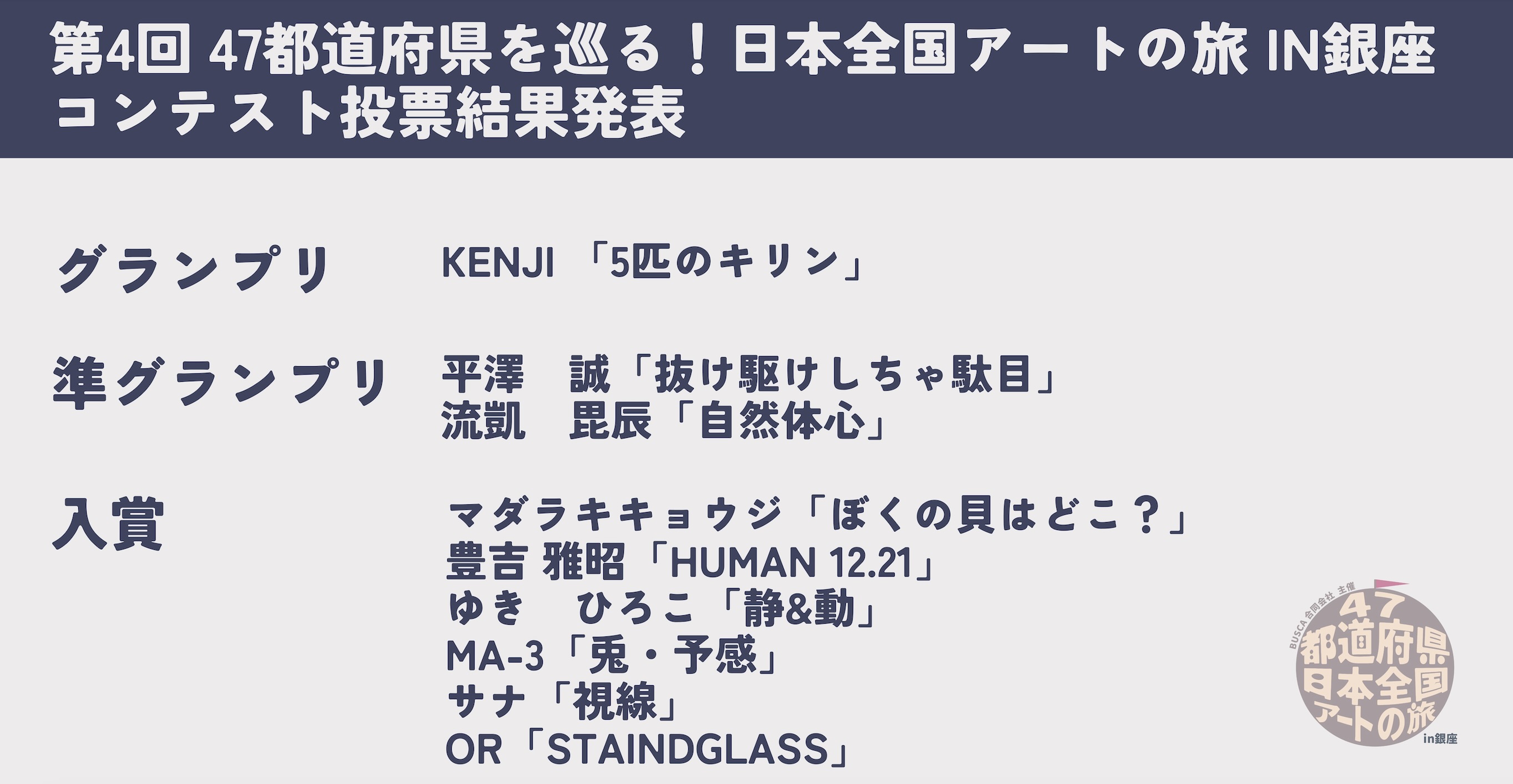 「第4回 47都道府県を巡る!日本全国アートの旅 in 銀座」コンテスト結果発表 〜全国から集結したアーティストによる感動の2日間〜