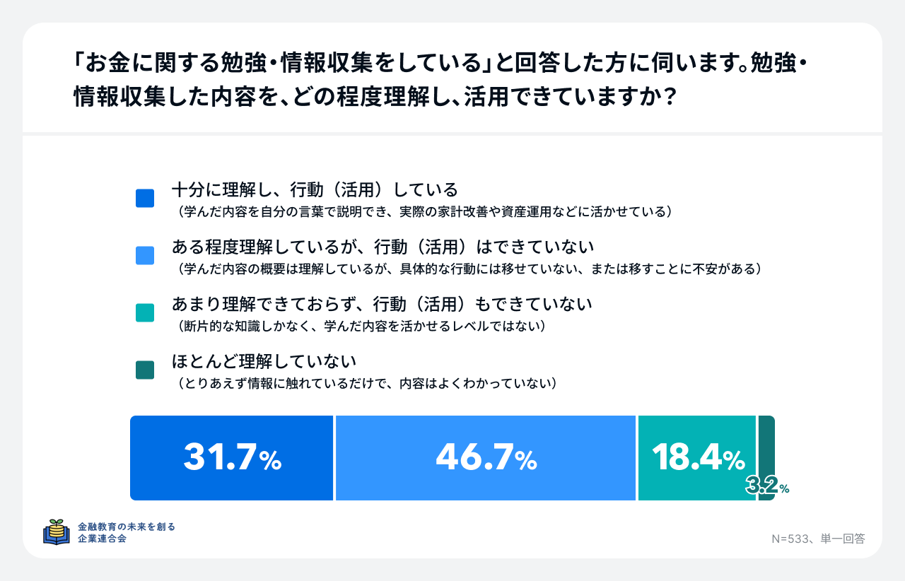 お金の知識の「インプット」と「アウトプット」にギャップ。学んでも「活用できていない」層が約6割