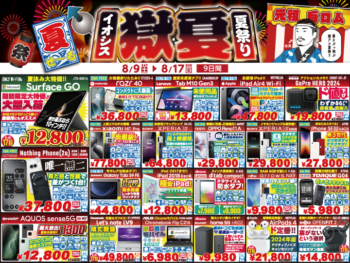 【中古スマホ・タブレット】期間限定大特価!イオシス『獄夏』夏祭り!大人気タブレットが12,800円!【未使用品もありますよ!】