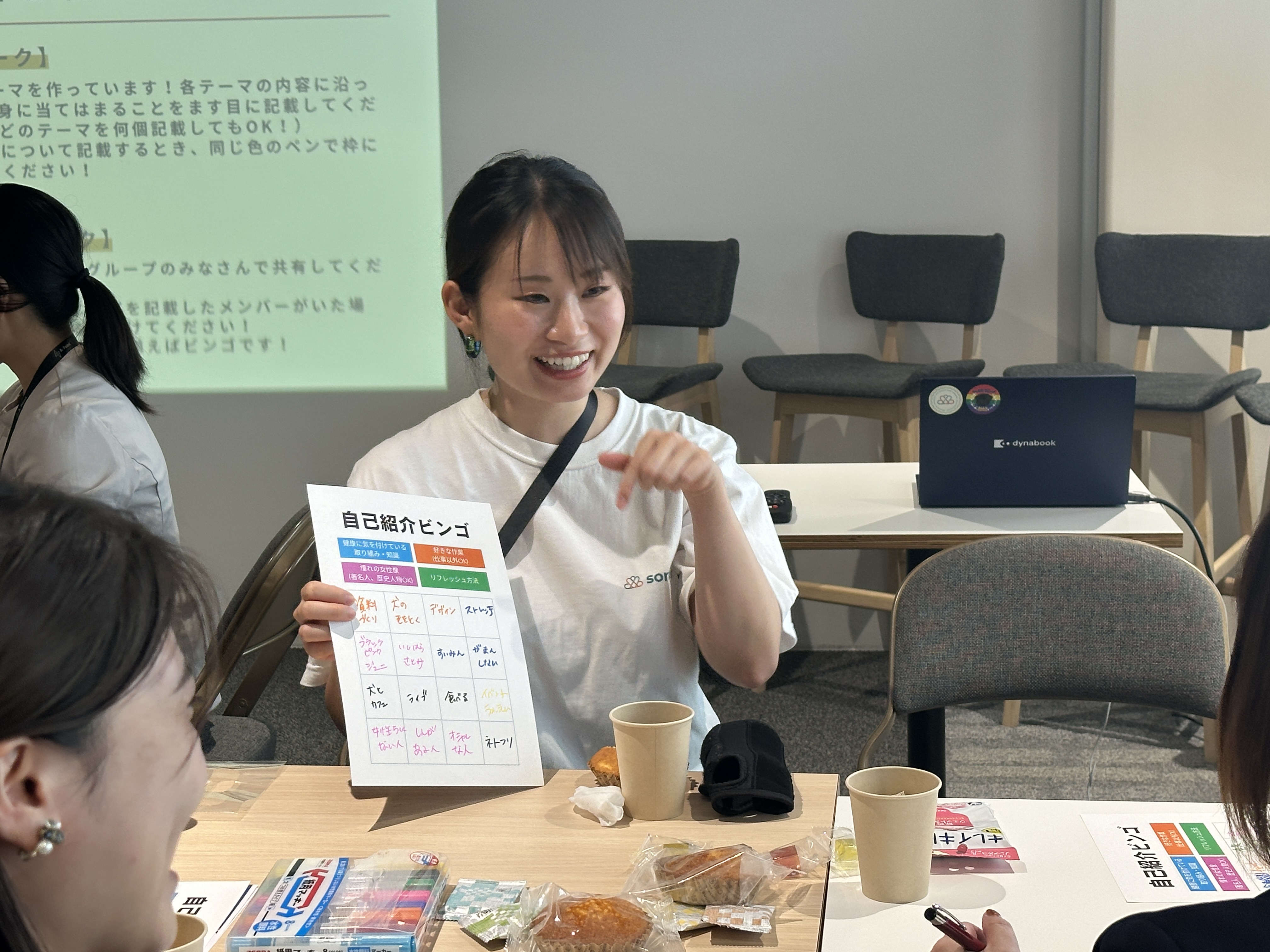 ビンゴシートのマスをすぐに埋められる方も居れば、悩み考え込む方の姿も見られました。日頃、自分自身のことをしっかりと考える時間を取ることが難しい方に、自身の考えや価値観を改めて振り返っていただき、新たな気付きを得ていただく機会にも繋がりました。