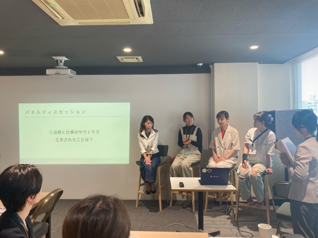 パネルディスカッション登壇者(左から、松澤 邦子氏(にしたんARTクリニック所属カウンセラー)、三上 玖弥氏(アスノシステム株式会社 経営企画部)、藤井 佑里子氏(株式会社東洋システムサイエンス 管理栄養士)、玉村 優佳氏(株式会社ソルビス 代表取締役社長)