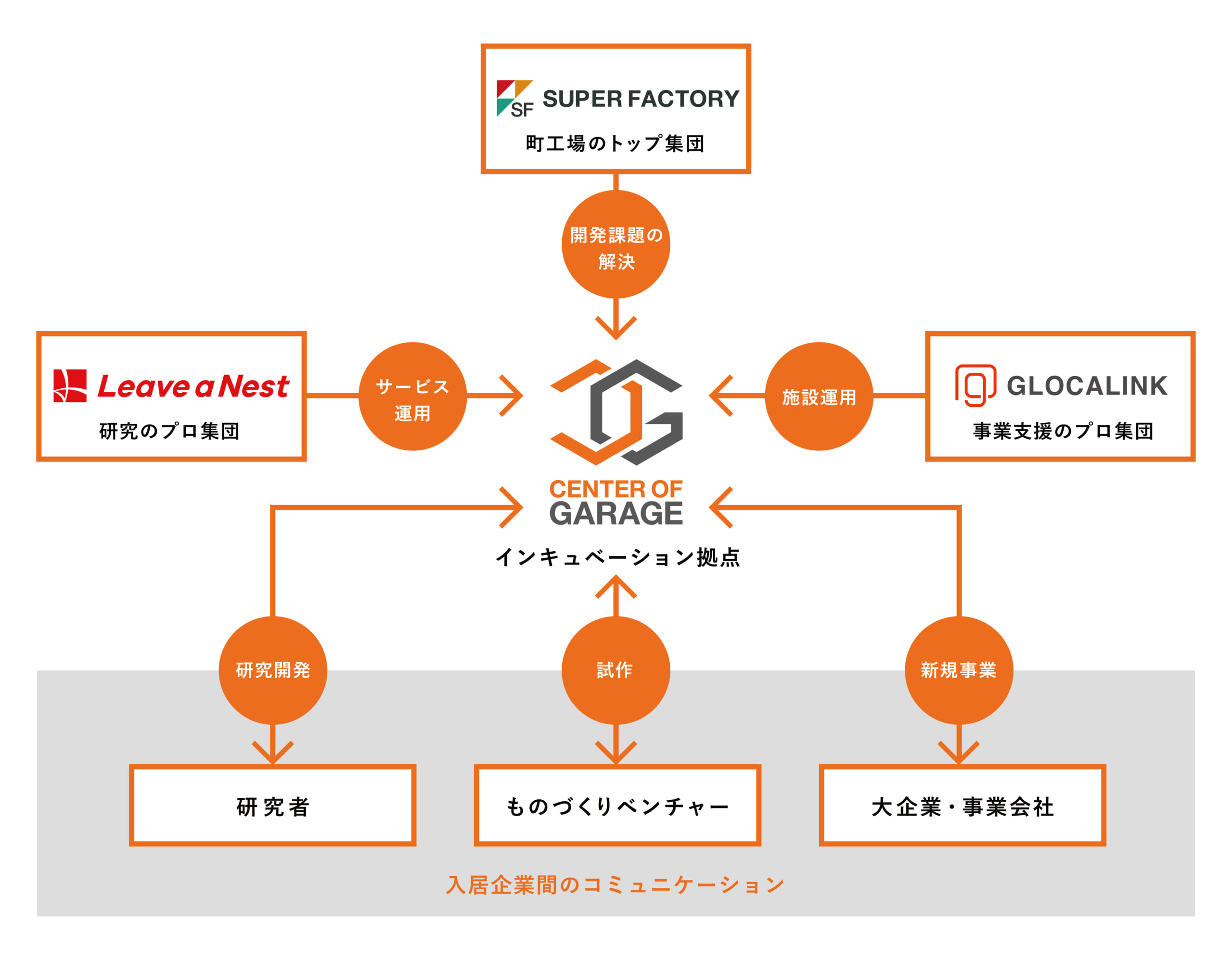 ものづくり系ベンチャー(リアルテック・ベンチャー)のためのインキュベーション・ハブです。研究者、町工場、事業会社といった多様なプレイヤーを有機的に結びつけ、国内外の技術や知見を融合させることで、世界を変える事業の創出を加速させます。