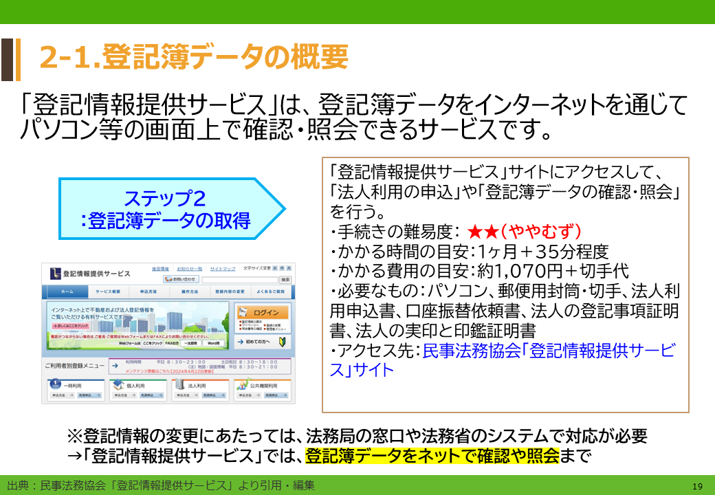 電子申請の手続きと、ステップ2:登記簿情報の取得